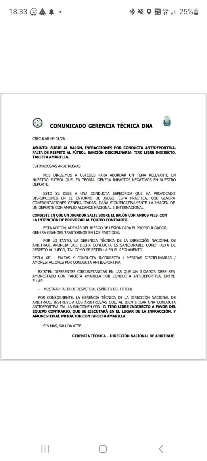 🚨A partir de este fin de semana en el fútbol argentino: si un jugador se para arriba de la pelota debe cobrarse indirecto para el equipo rival y amonestación.