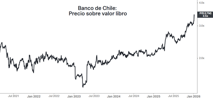 Además, en la región, bancos como el Banco de Chile operan a 3,5 veces su valor libro.