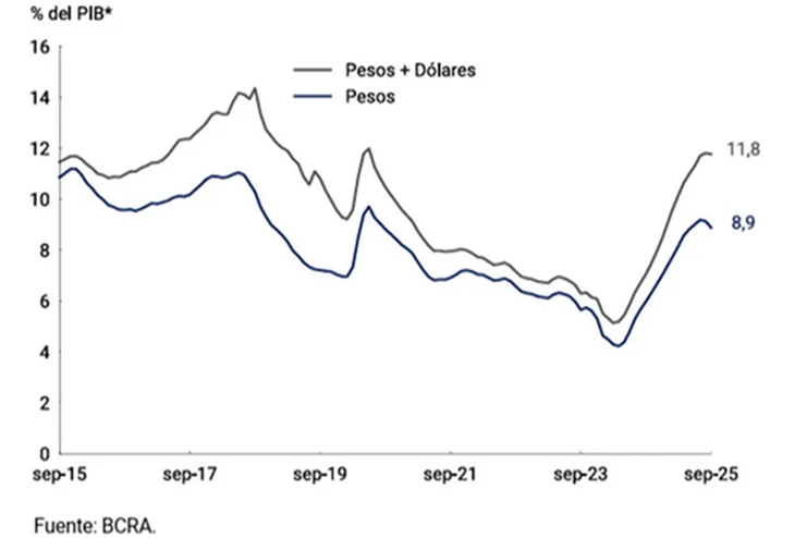 O sea, el mercado argentino todavía no está priceando un ciclo pleno de crédito. Y ahí aparece el verdadero catalizador. Argentina tiene uno de los ratios de crédito privado sobre PBI más bajos del mundo, apenas 12%.