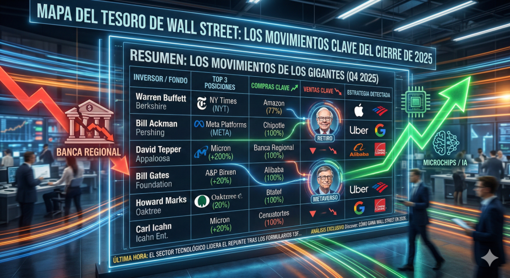 El cierre de 2025 marcó un cambio de era en Wall Street. Los últimos informes 13F revelan que los grandes gurús están soltando la banca tradicional y el riesgo en China para apostar fuerte por los chips, la energía y una sorpresa digital que nadie esperaba.