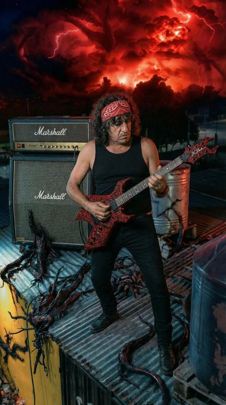 La anécdota cuenta que cuando Ángel le comentó a un amigo que estaba pensando en hacer un video ambientado en la ciudad con Stranger Things, surgió en tono de chiste la idea de imaginar a “Pacheco” tocando la guitarra sobre el techo de su gomería, una escena icónica de la serie. “Lo que empezó como una ocurrencia terminó convirtiéndose en algo posible gracias a la inteligencia artificial”, volvió a afirmar.