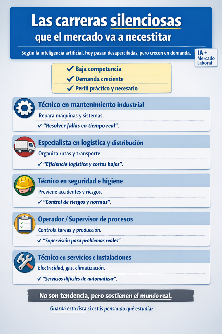 La inteligencia artificial analiza datos del mercado laboral y detecta carreras que hoy pasan desapercibidas, pero que serán cada vez más necesarias. Son trabajos que no suelen estar de moda ni aparecen en rankings virales, pero cumplen un rol clave en el funcionamiento real de empresas y servicios.