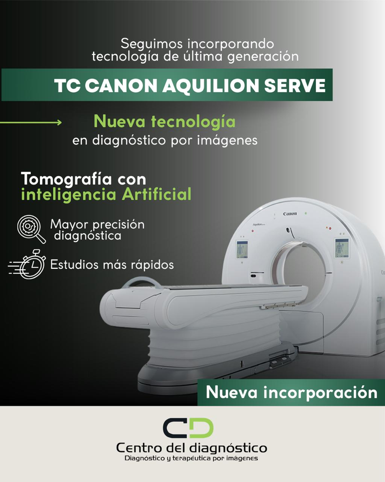 El Centro del Diagnóstico de San Rafael ha incorporado un tomógrafo de la empresa Canon, de última generación, para brindarle este servicio indispensable a toda la sociedad sureña. El tomógrafo se había presentado en la Feria Internacional de Tecnología Médica en Chicago, donde estuvo presente uno de los directores del Centro del Diagnóstico, el Dr. Fernando Díaz junto a la Dra. Díaz.