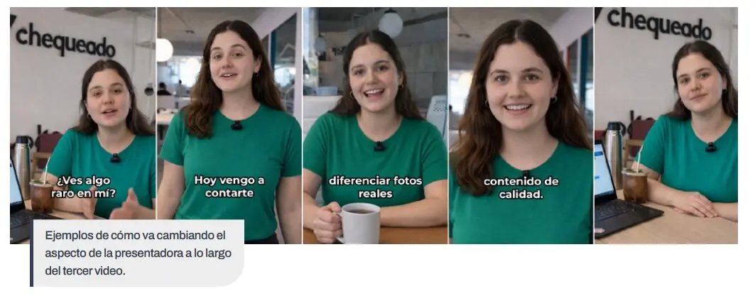 Con el apoyo del ICFJ (International Center for Journalists), producimos 4 videos y medimos cuánto tiempo y dinero implicaba hacerlos. Todo el proceso estuvo supervisado por personas: internamente discutimos bastante si tenía sentido usar IA para generar contenidos en un medio que justamente advierte sobre los riesgos de la desinformación. En todo momento tuvimos como marco de referencia la Política de uso de IA de Chequeado.